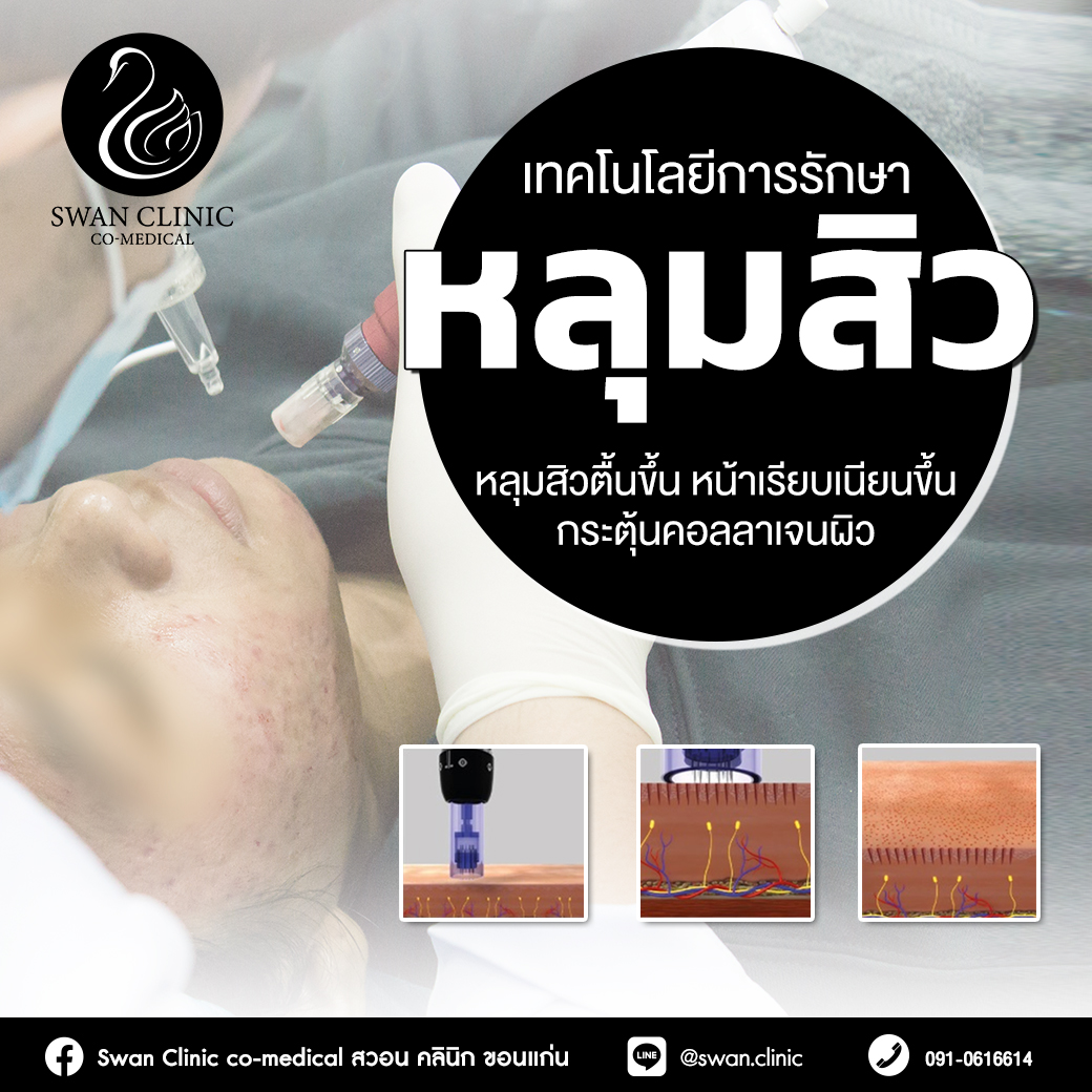 Microneedling รักษาหลุมสิว และรูขุมขนกว้าง โดยการใช้เข็มขนาดเล็กกระตุ้นให้เกิดการสร้างคอลลาเจนและเส้นใยอีลาสติน ซึ่งจะทำให้รูขุมขนกระชับ เนียนเรียบขึ้น นอกจากนี้ยังช่วยรักษาหลุมสิว ลดรอยสิว และทำให้จุดด่างดำดูจางลง ไม่ทำให้ผิวไวต่อแสง ไม่ต้องใช้เวลาพักฟื้นนานเหมือนการทำเลเซอร์